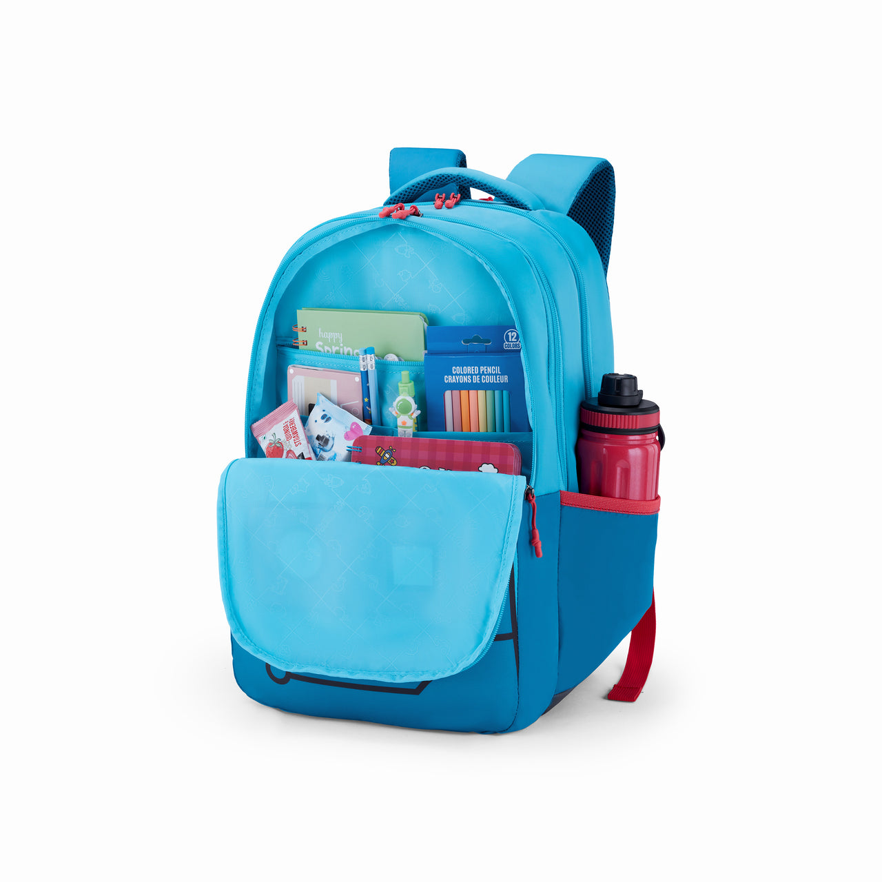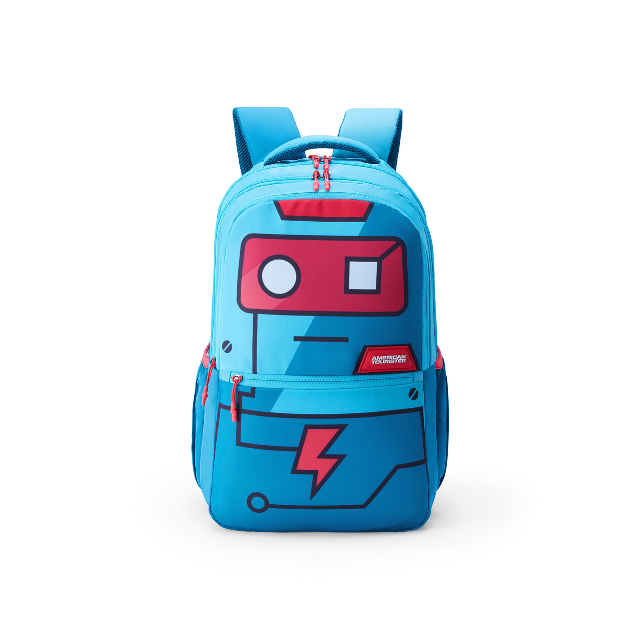 A 35 L robot-print teal backpack from American Touristerβs Toodle 4.0 series β designed for students and young users. Itβs spacious with smart organization, built to handle school books, stationery, gadgets, and everyday essentials with comfort and protection.