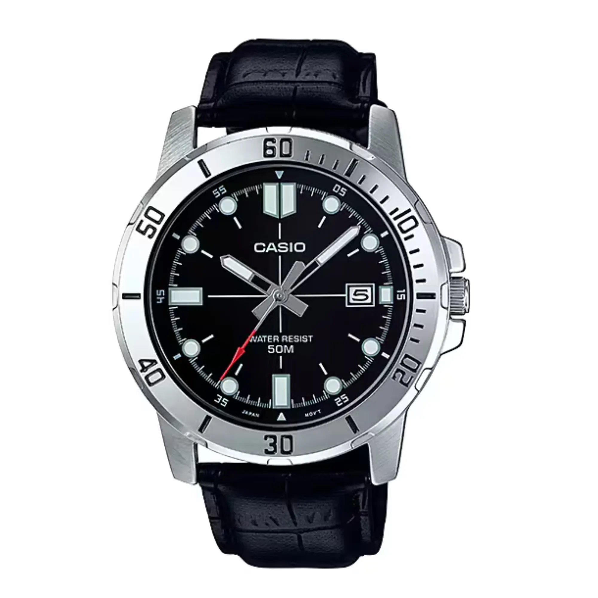 Whether you’re heading to the office, going out with friends, or enjoying weekend adventures, the Casio MTP-VD01L-1EVUDF delivers reliable performance and timeless style. Its mineral glass protects against scratches, while the leather strap adds a sophisticated touch.