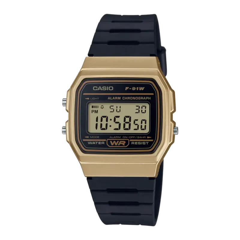 Stylish Gold-Tone Face – more premium and eye-catching than the standard F-91W