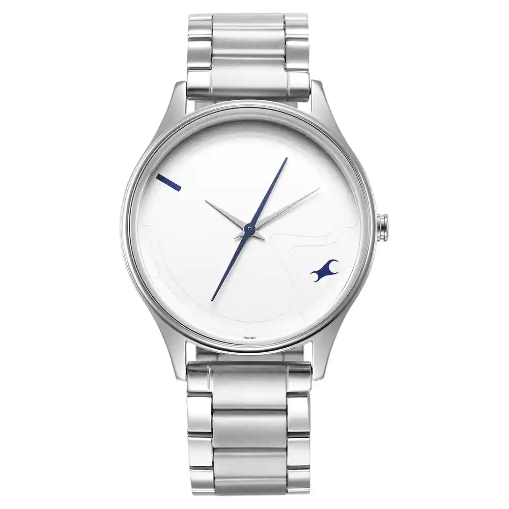 - Fastrack Stunners Quartz Analog Watch for Guys With Silver Dial Metal Strap