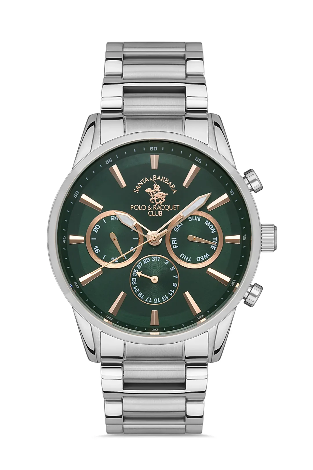The Santa Barbara Polo & Racquet Club SB.1.10420-4 chronograph men’s watch combines bold stainless-steel construction with a vibrant green dial and precise quartz movement—built for style and reliability in Bangladesh.