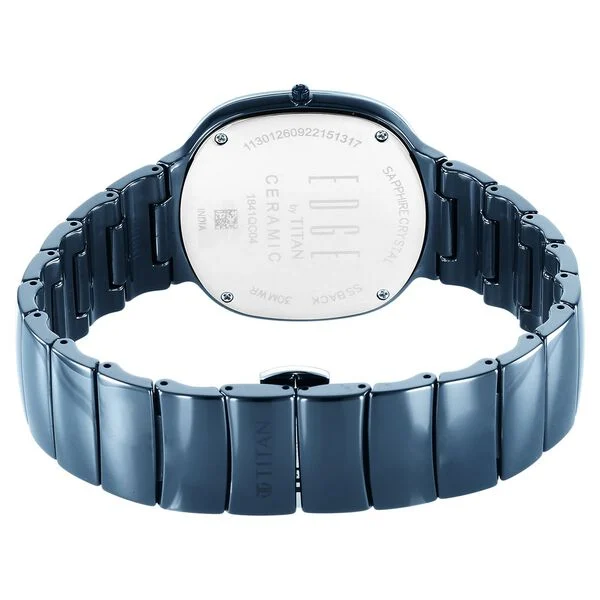 Elevate your wristwear with the Titan Squircle Camo 1841QC04 — a timepiece that blends modern design with refined craftsmanship. Its blue-dial face, protected by scratch-resistant sapphire crystal, paired with a sleek ceramic case and matching curved ceramic strap, gives you a look both bold and elegant. The slim profile of ~4.45 mm ensures comfort, especially for daily wear.