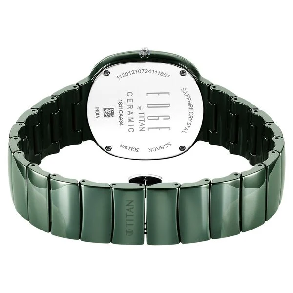 Elevate your wristwear with the Titan Squircle Camo 1841QC05 — a timepiece that blends modern design with refined craftsmanship. Its blue-dial face, protected by scratch-resistant sapphire crystal, paired with a sleek ceramic case and matching curved ceramic strap, gives you a look both bold and elegant. The slim profile of ~4.45 mm ensures comfort, especially for daily wear.