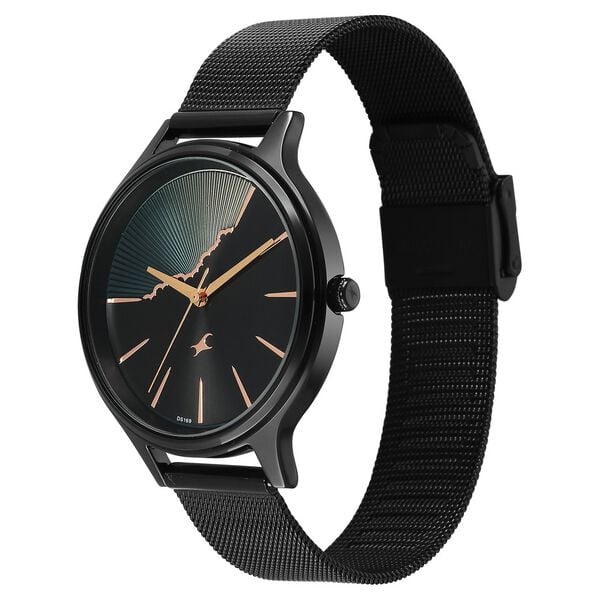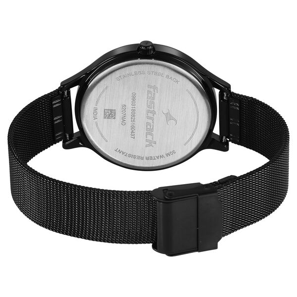The Fastrack Style Up 6207NM02 features a bold black dial that adds a touch of elegance and sophistication to your wrist. Finished with a matching black stainless steel strap and a round metal case, this watch is perfect for school, casual outings, and daily wear.